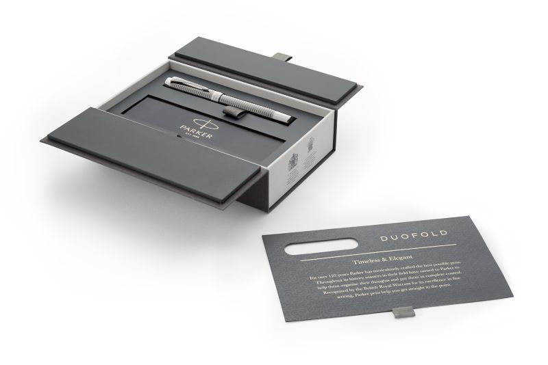 Ручка роллер Parker Duofold Prestige Ruthenium Chiselled CT от официального дилера Parker в Симферополе. Вы можете дополнительно заказать гравировку, которая подчеркнет Вашу оригинальность и придаст памятность статусному подарку. Все ручки Паркер поставляются в фирменном футляре.