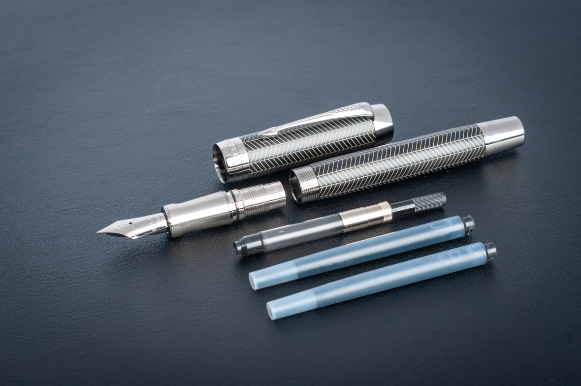 Перьевая ручка Parker Duofold Prestige Centennial Black Chevron CT от официального дилера Parker в Симферополе. Вы можете дополнительно заказать гравировку, которая подчеркнет Вашу оригинальность и придаст памятность статусному подарку. Все ручки Паркер поставляются в фирменном футляре.
