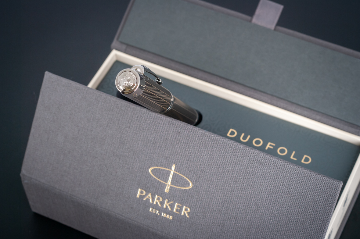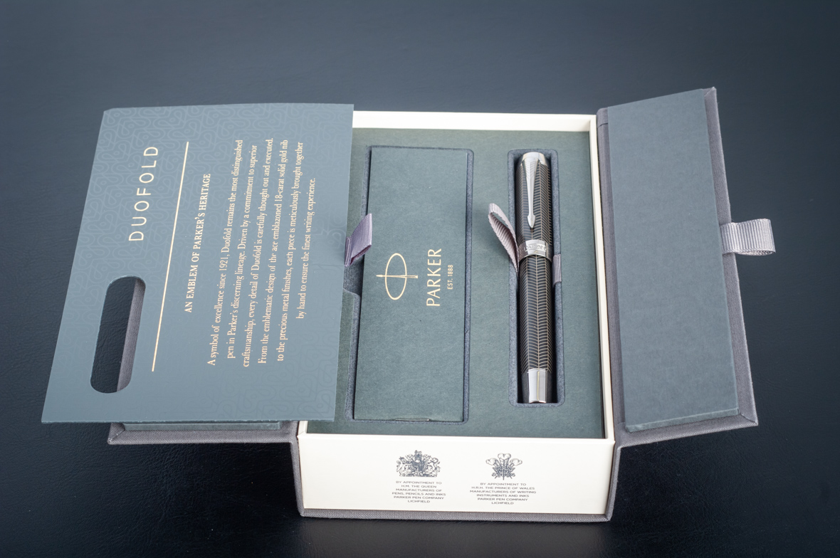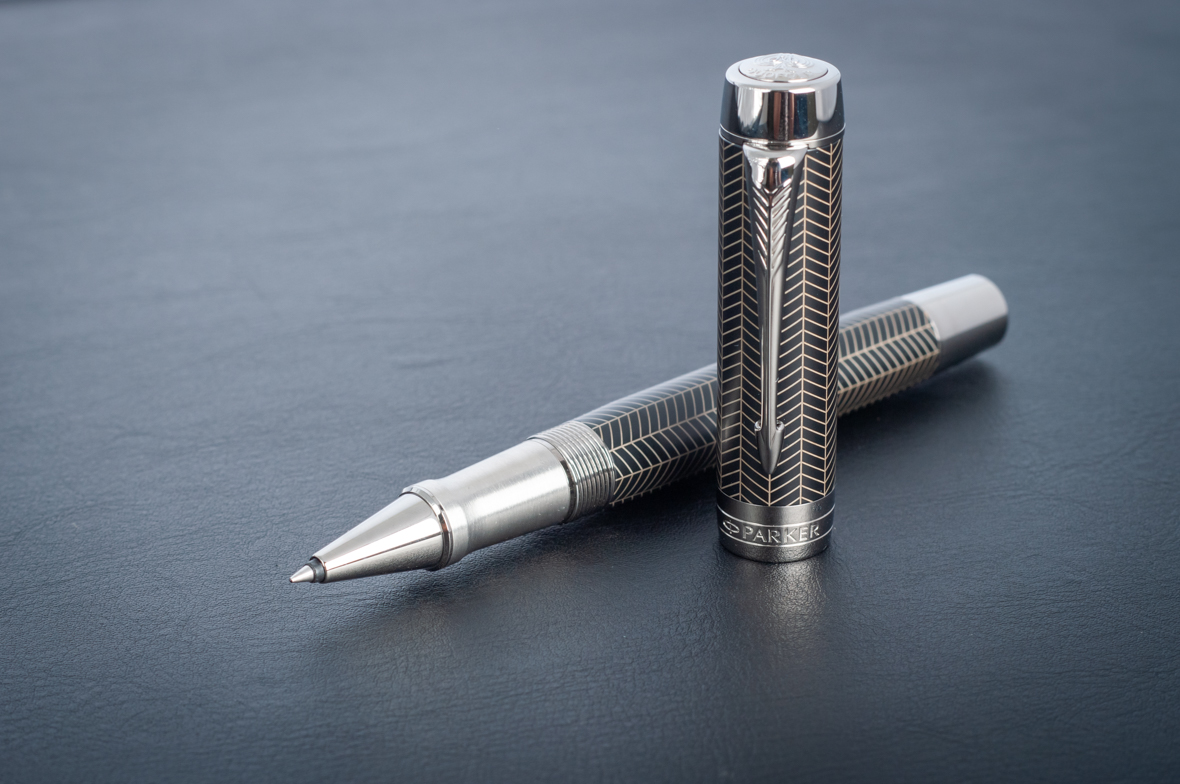 Ручка роллер Parker Duofold Prestige Centennial Black Chevron CT от официального дилера Parker в Симферополе. Вы можете дополнительно заказать гравировку, которая подчеркнет Вашу оригинальность и придаст памятность статусному подарку. Все ручки Паркер поставляются в фирменном футляре.